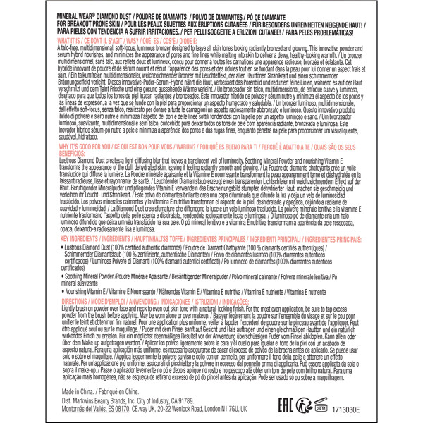 Mineral Wear® Diamond Dust from Physicians Formula is a high-performance powder with diamond shimmer that provides a radiant effect.