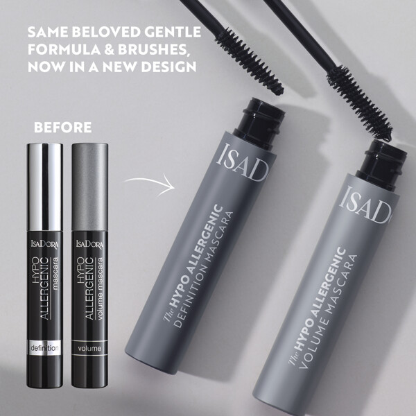 IsaDora Hypo Allergenic Mascara is now also available in a new volumizing version: IsaDora Hypo Allergenic Volume Mascara. It has the same hypoallergenic formula but with a new volumizing brush.