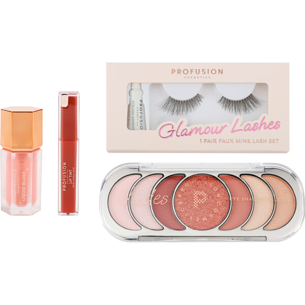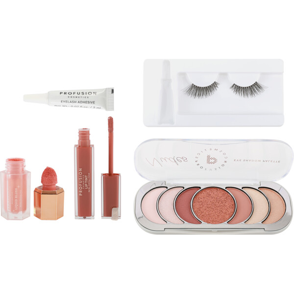 It includes a liquid blush for natural colour, a moisturising lip tint with a hint of colour and shine, an eyeshadow palette with 4 shades for everything from subtle everyday looks to intense evening makeup, and a pair of false eyelashes with transparent glue for easy application.