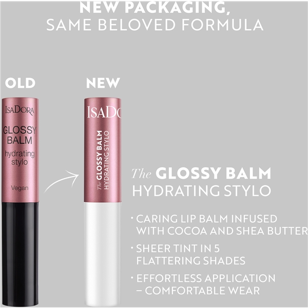 IsaDora Glossy Balm Hydrating Stylo is a moisturizing, creamy lip balm that nourishes your lips with sheer color and shine.
