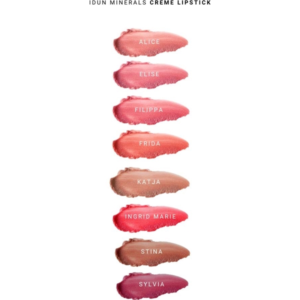 In IDUN Minerals lipsticks, there is neither perfume nor preservatives, substances that can commonly cause allergies or itching. Contains high-quality mineral pigments.