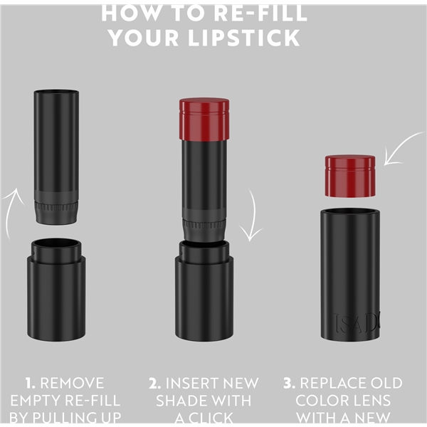 IsaDora The Perfect Moisture Lipstick Refill gives you the opportunity to make a sustainable choice for IsaDora's iconic, moisturizing lipstick. It has a richly pigmented and creamy formula that glides easily over the lips.