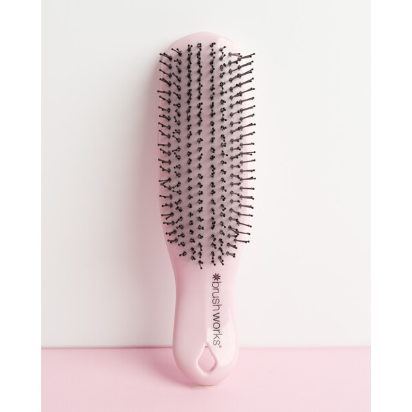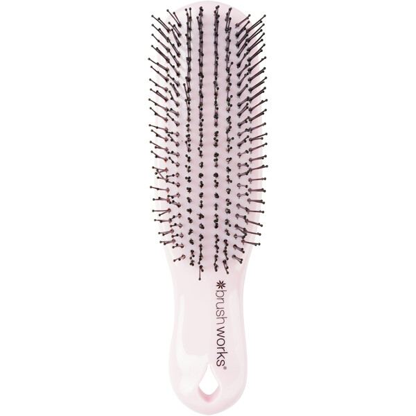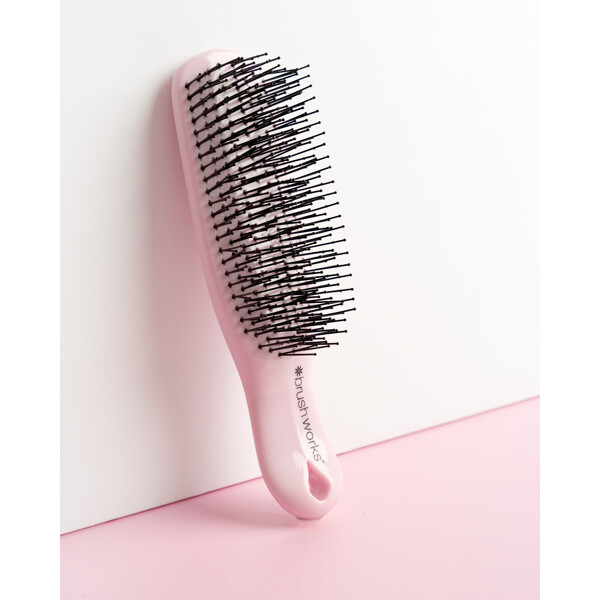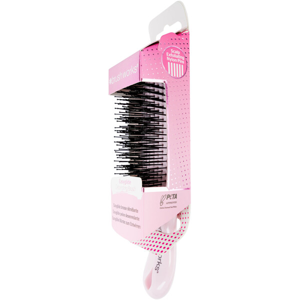 Brushworks Easyglide Detangling Brush is the perfect solution for easy hair care and styling. The brush features eight rows of flexible nylon bristles in two different lengths that easily detangle and leave the hair soft and manageable. It works equally well on both wet and dry hair and is suitable for most hair types – perfect for any occasion, whether you're combing through conditioner, dealing with shower tangles, or just brushing your hair daily.The flexible bristles also provide a gentle scalp massage that promotes relaxation and helps to cleanse the scalp of impurities and product residues, for a fresh and clean feeling.PETA-approved – cruelty-free and vegan.