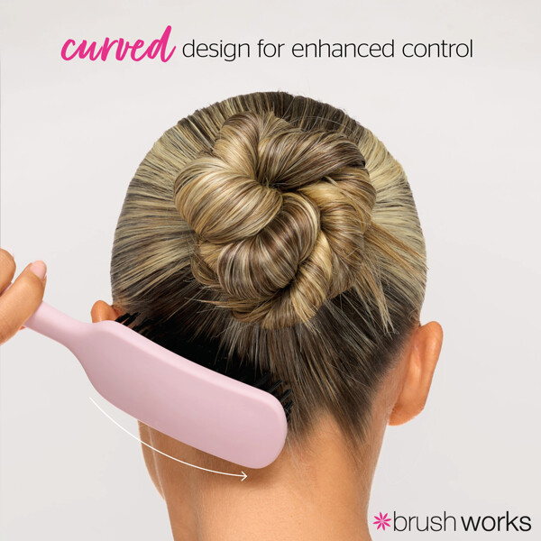 Brushworks Slick Back Bristle Brush is the perfect styling brush for slick back hairstyles, sleek looks, and other elegant updos. The brush helps you shape your hair smoothly and control flyaways for a smooth and polished finish.