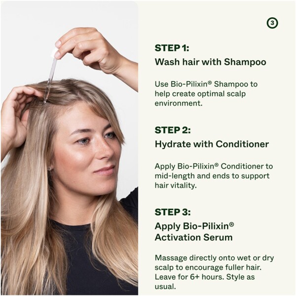 Bio-Pilixin® Serum is developed and manufactured in Denmark and has been formulated by experts to help reduce hair loss and support the growth of new hair. This is achieved using ingredients found in nature and synthesised by science with plant stem cell technology.