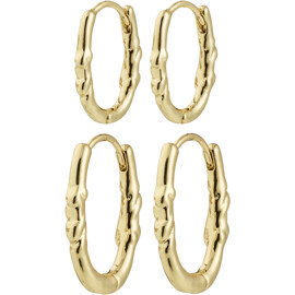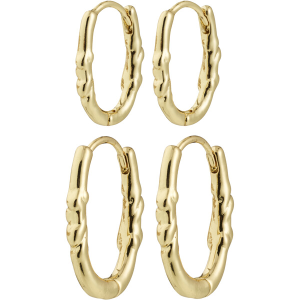 The gold-plated SENSE hoops from Pilgrim offer you a 2-in-1 set with oval hoops in an organically shaped design that creates a perfect mix of texture and shine. Designed with easy-to-use click locks, they are a must-have in your jewellery collection – perfect for both solo wear and stacked styling.