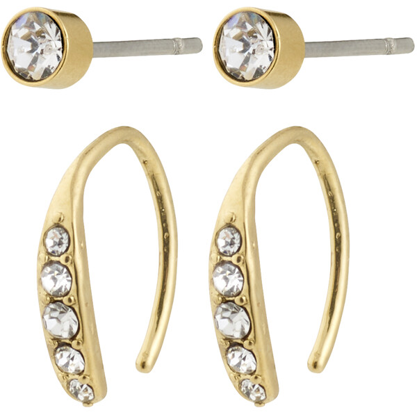 With the GIONNI earrings from Pilgrim, you get a 2-in-1 set that offers endless styling options. The small gold-plated earrings with Preciosa crystals are your everyday must-haves, while the rounded ear hooks add a next-level touch when you want to spice up your look.