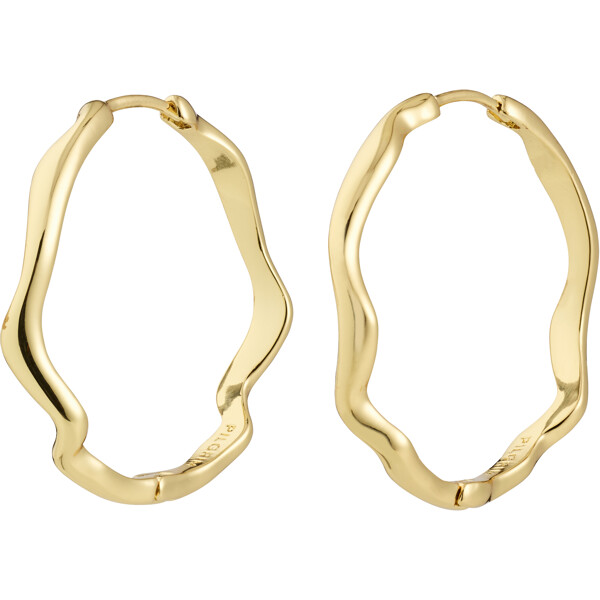 The LARKIN earrings from Pilgrim have a wavy, freeform silhouette – a fresh interpretation of classic hoops. The gold-plated wavy hoops have a minimalist yet impactful design that beautifully catches the light and creates a playful and elegant expression.