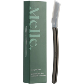 Melle. Dermaplane Razor - Facial Razor is a super sharp, single-blade razor that gently removes even the finest facial hair, smooths contours, and shapes eyebrows.